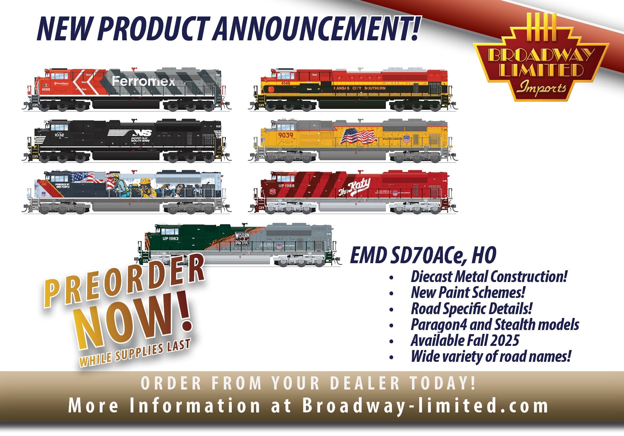 Broadway Limited is thrilled to announce a brand-new production run of our highly popular die-cast EMD SD70ACe diesel locomotive in HO scale! This latest release brings together cutting-edge perfo...