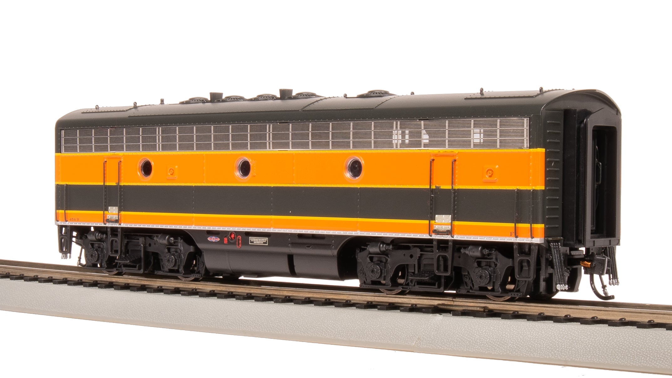 The EMD F7 is a 1,500 horsepower diesel locomotive built by General Motors' Electro-Motive Division between 1949 and 1953. The F7 was EMD's fourth model in the line of F-unit locomotives, and was by far the best-selling cab unit of all time. The F7 primarily differed from the F3 in internal equipment, but there were some noticeable external changes such as the grills and the dynamic brake hatches. F7's operated in both passenger and freight service, and many of them remained in service for decades. In this production, we are modeling A and B-units from nine railroads with prototypically accurate road numbers and paint schemes. We are offering A-B sets with Powered A-units (w/ Paragon4 Sound) and unpowered B-units, and also separate single A and B-units (where appropriate) with our full Paragon4 DC/DCC/Sound system. All of our models have road-specific details and lighting. Road-specific detail options in this production, prototypically accurate for each road name: