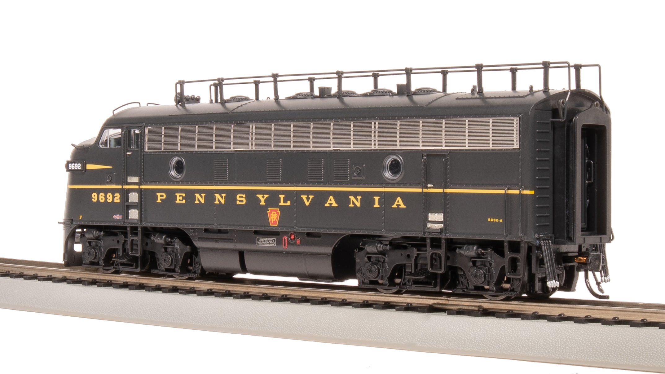 The EMD F7 is a 1,500 horsepower diesel locomotive built by General Motors' Electro-Motive Division between 1949 and 1953. The F7 was EMD's fourth model in the line of F-unit locomotives, and was by far the best-selling cab unit of all time. The F7 primarily differed from the F3 in internal equipment, but there were some noticeable external changes such as the grills and the dynamic brake hatches. F7's operated in both passenger and freight service, and many of them remained in service for decades. In this production, we are modeling A and B-units from nine railroads with prototypically accurate road numbers and paint schemes. Our Stealth Series offering will consist of No-Sound / DCC-Ready single A-units and single B-units. All of our models have road-specific details. Road-specific detail options in this production, prototypically accurate for each road name: