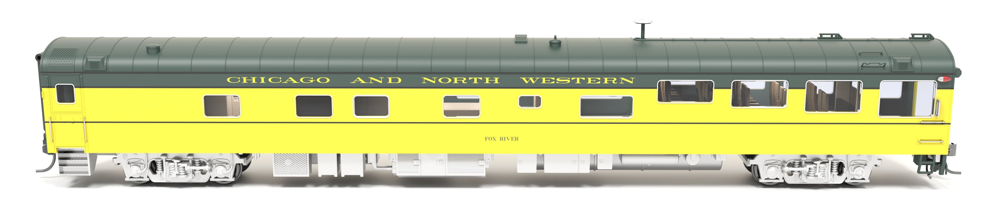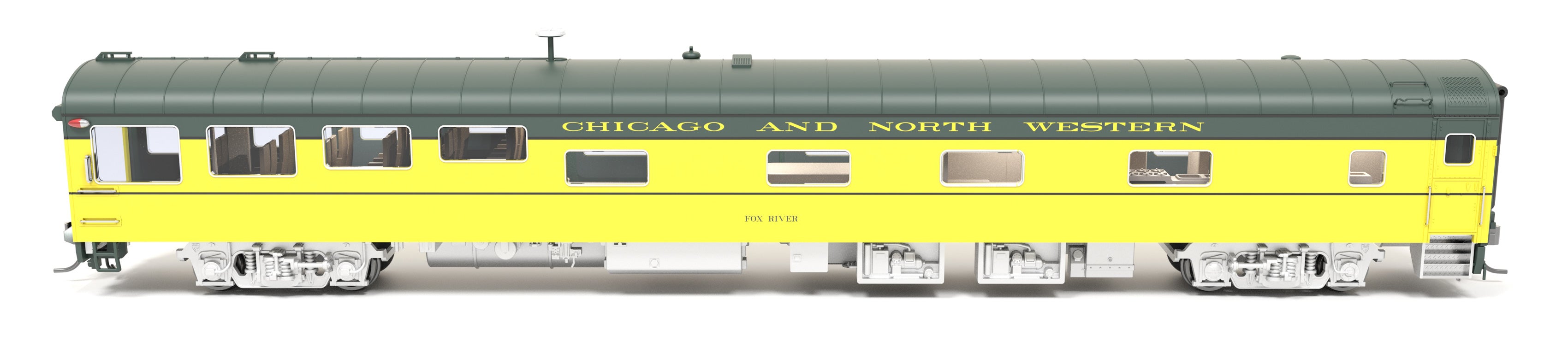 Following the 1995 Union Pacific-C&NW merger, the Fox River joined Union Pacific’s roster, receiving a comprehensive renovation in 1997 and a fresh paint update in 2006, complete with a distinguishing white stripe along its roof. The car is often seen as the final addition to Union Pacific’s classic yellow passenger car train, embodying the grandeur of American rail travel.